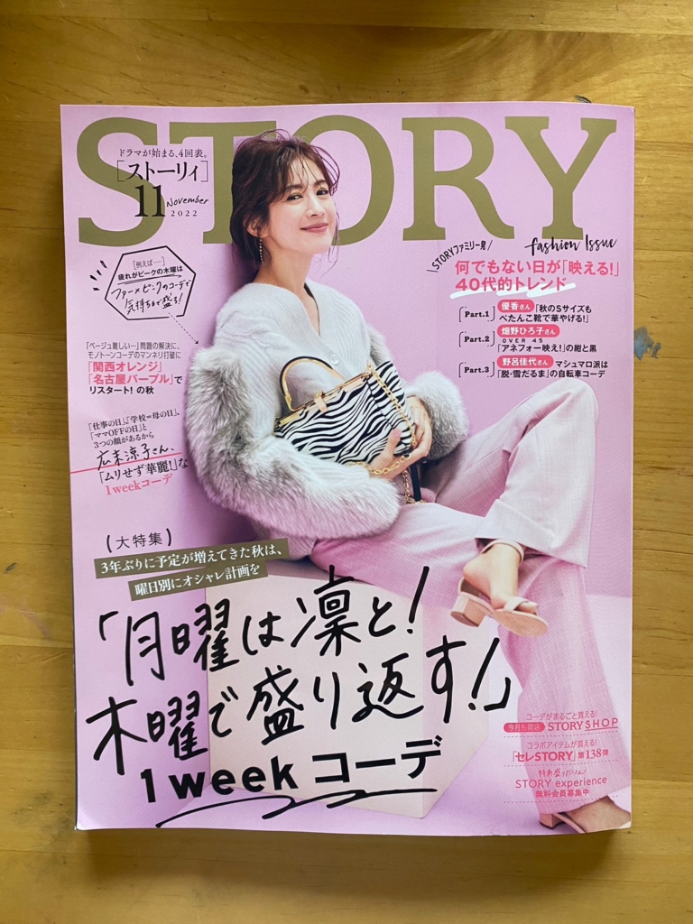 この度、ファッション誌【STORY11月号】でわたしの生き方を掲載頂きました。わたしはおしゃれが大好きです!ファッション誌はいくつも購読してきたし、今もしています。ファッション誌って最先端のファッションを知るっていう意味もあるけれどそうでありた... -
