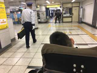 眼鏡をかけた駅員さんが、大きな体を小さくして「お急ぎのところ大変申し訳ございません」