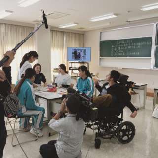 大阪健康福祉短期大学介護福祉学科の伊藤明代先生のご紹介で今回実現した大阪城南女子短期大学瀬先生、そして専攻科の4名の学生の皆様と障害当事者の家庭背景及び生活支援について。さらに障がい当事者とのコミュニケーションについて実際に体験を通し学ぶ授業です。