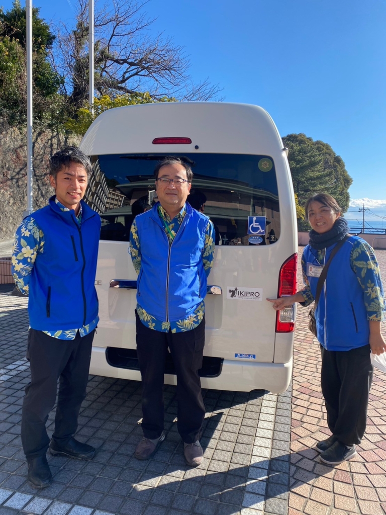 昨年に引き続き私たちの移動を全面的にサポートしてくださった、介護タクシー伊豆おはなの河瀬 豊さん、河瀬 愛美さん。
