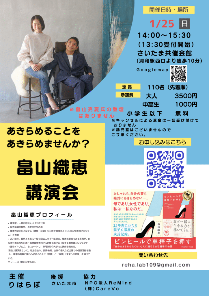 全国各地での畠山織恵講演会、開催が決定しているものをご紹介いたします。 申込受付中 2026年1月25日㈰時間:14:00~15:30会場:さいたま共催会館 お申し込みはこちら チラシのダウンロードはこちら 開催決定(申込受付開始次第ご案内します) 2025年12月6日㈯ 広島県立三原市 2026年1月25日㈰ 埼玉県さいたま市2026年2月11日(水・祝)大阪府枚方市2026年6月6日㈯ 千葉県市川市 お知らせ講演会開催予定 ほ・とせなNewsさんに取材いただきました! 大阪八尾市講演会ご報告 関連記事 ある青年の夢の一歩を応援する講演会です!!【12月24日大阪開催】 2022.12.21 心をつなぐ、心でつながる 2019.09.05 講演会のお知らせ 大阪府東大阪市 2025.02.08 ◾️ニューロノード9月体験会のご報告&10月体験会のご案内 2024.10.04 広島県初福山市講演会のご報告 2024.08.29 ほ・とせなNewsさんに取材いただきました! 2024.10.23 講演会のご案内 2025.08.08 講演会のご案内 2025.07.20