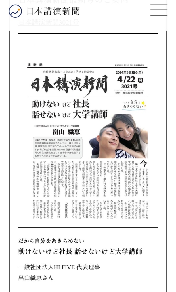 だからこそ、今回日本講演新聞さんに掲載いただけたことが、言葉にならないほど嬉しいのです。
